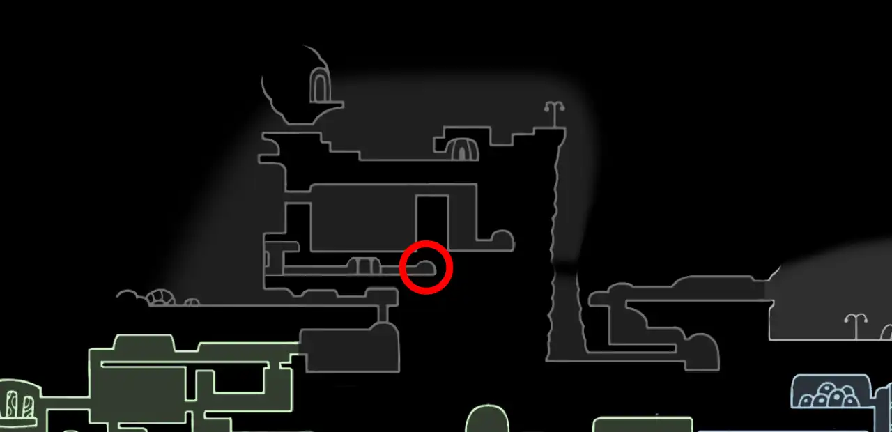 - Al fondo del pasillo veras el cuerpo de un insecto con capucha. Golpealo con tu aguijon onirico y veras varios destellos rojos aparecer.